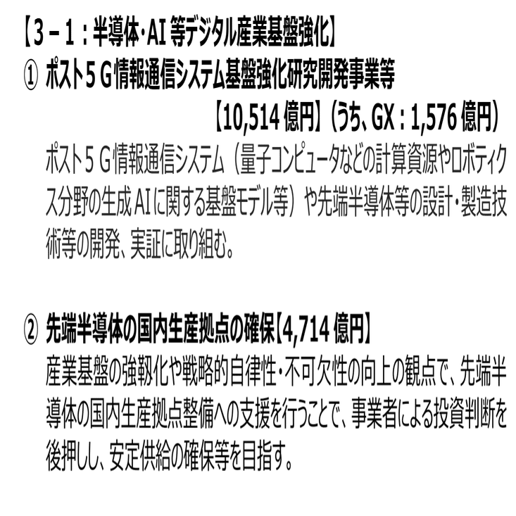 This supplementary budget proposal is an important step for Japan to open up the future of the digital industry. Massive investments in the fields of next-generation semiconductors and AI aim to strengthen Japan’s technological capabilities and improve its international competitiveness.